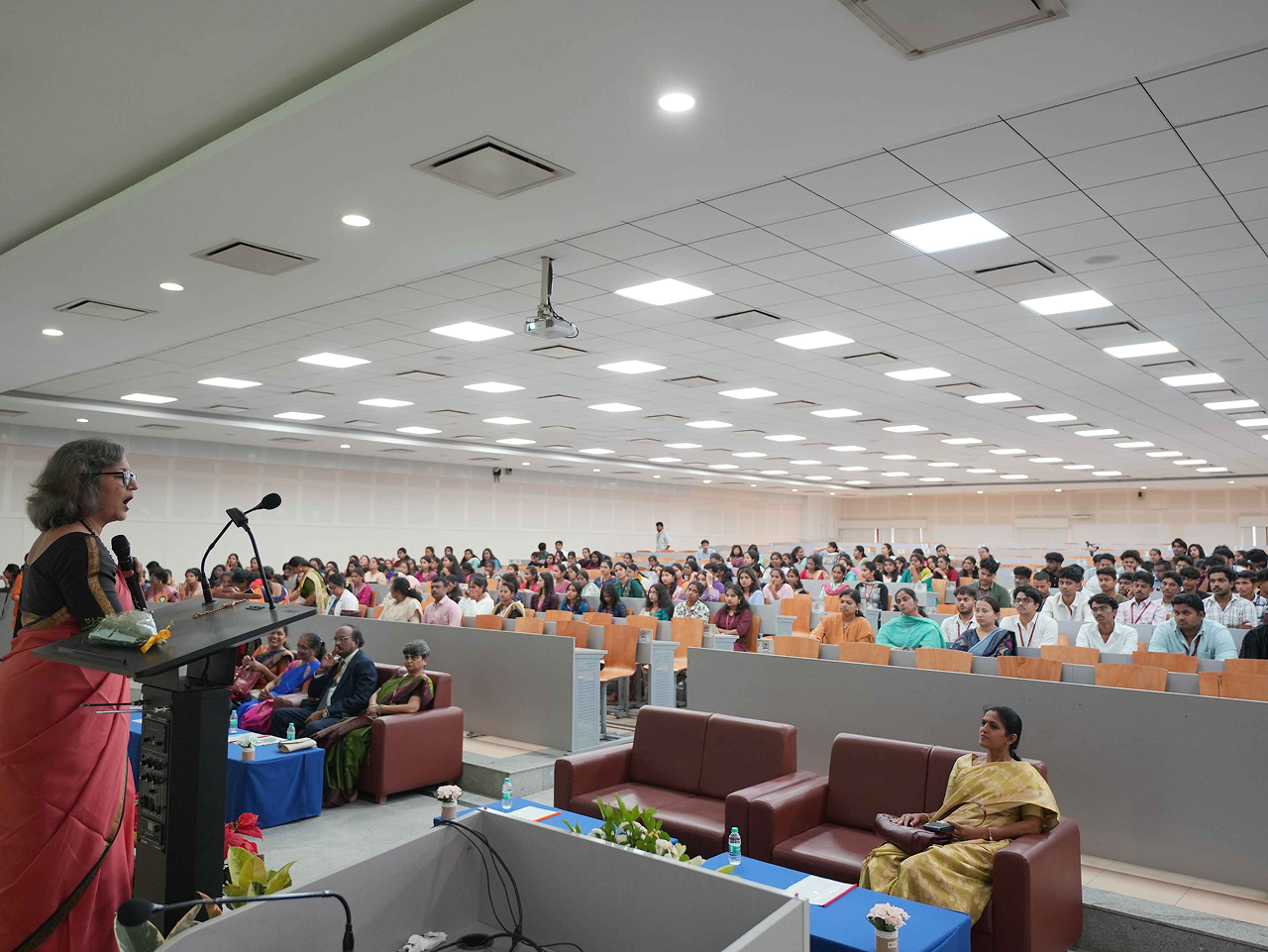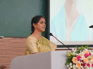 The Inauguration ceremony commenced at 9:50AM with the invocation song by the college choir and the traditional lighting of the lamp. This was succeeded by a welcome speech from Dr. Jasmine Joseph, Principal of VINS and RC, and thereafter an illuminated keynote address was presented by the respected COO, Vydehi group of institutions, Major Ushasree Kumar, her enlightening words set a perfect stage for our exploration into learning human values.